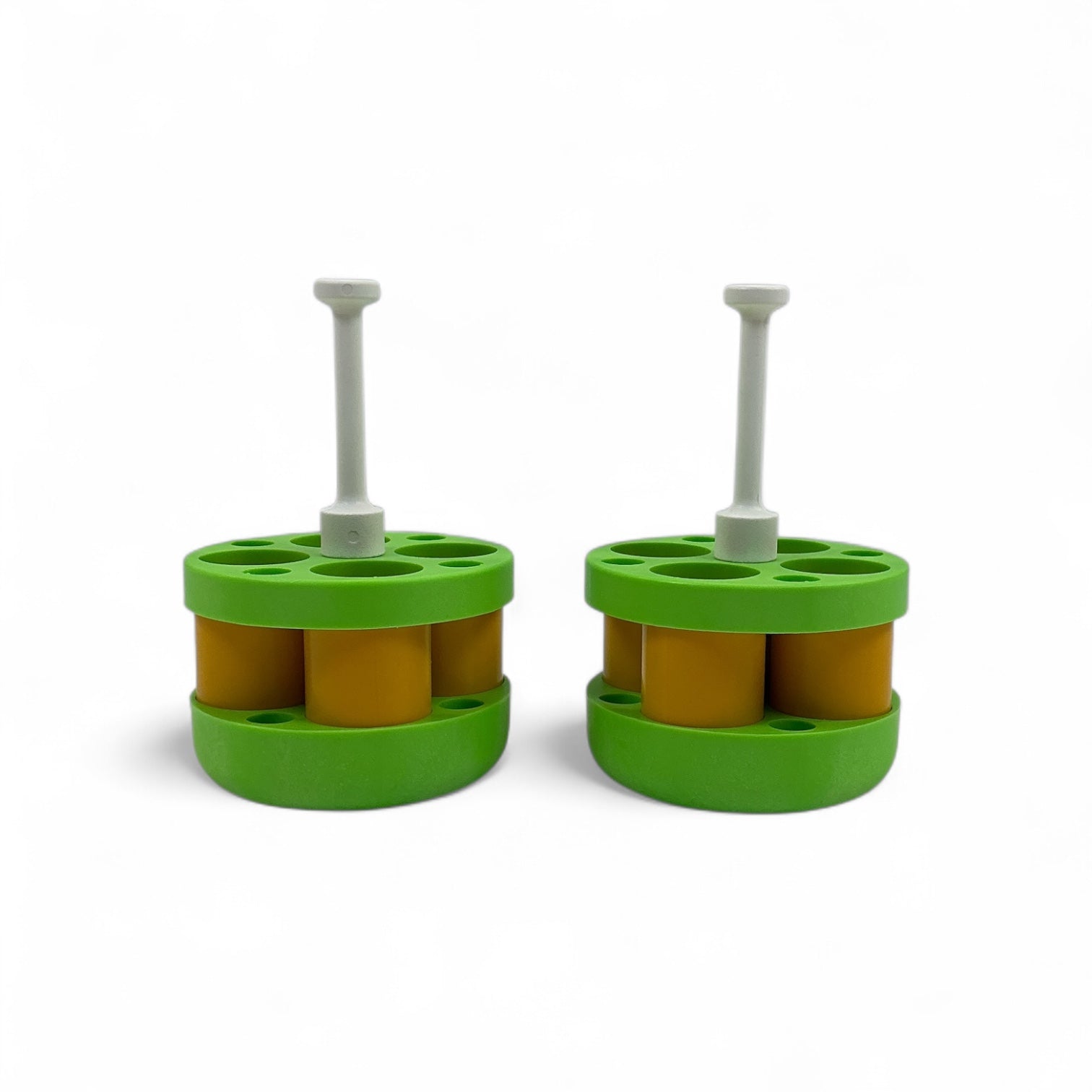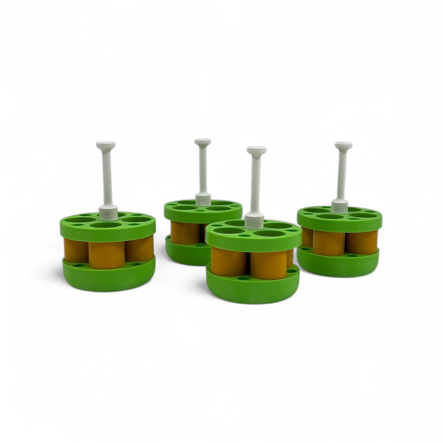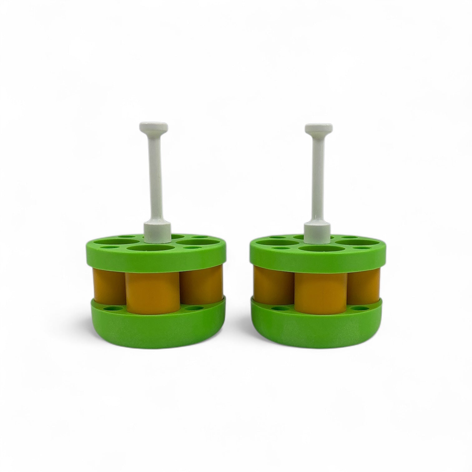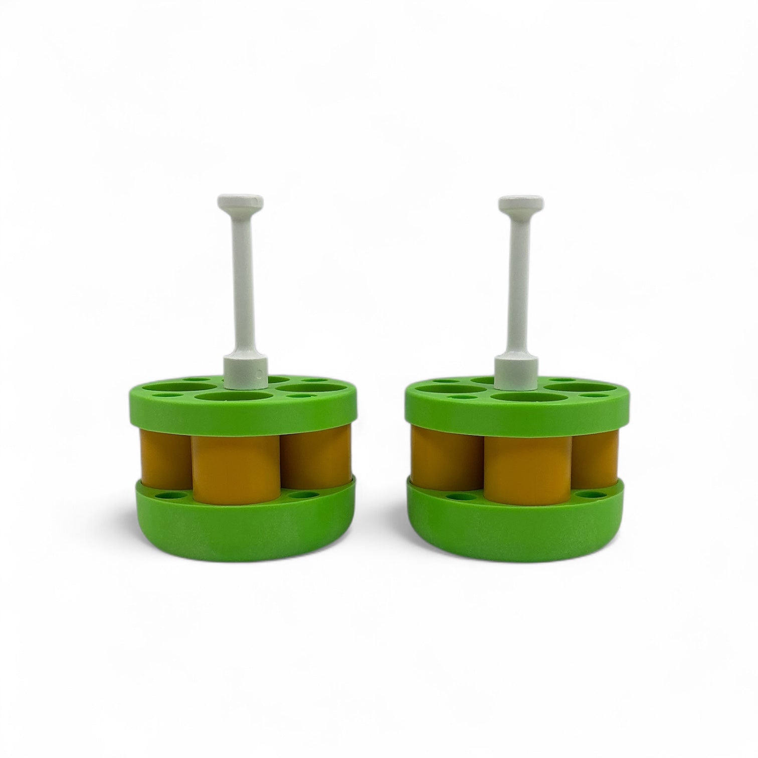 Keep your spins safe and stylish with this set of 4 Beckman Coulter Aerosolve tube racks, model 358992. Designed to securely hold four 30 x 120 mm conical tubes (50 mL each), these matched-weight racks are made for balanced runs in high-speed centrifuge applications. The lime green and yellow color combo adds a pop of lab flair while keeping your samples in check!