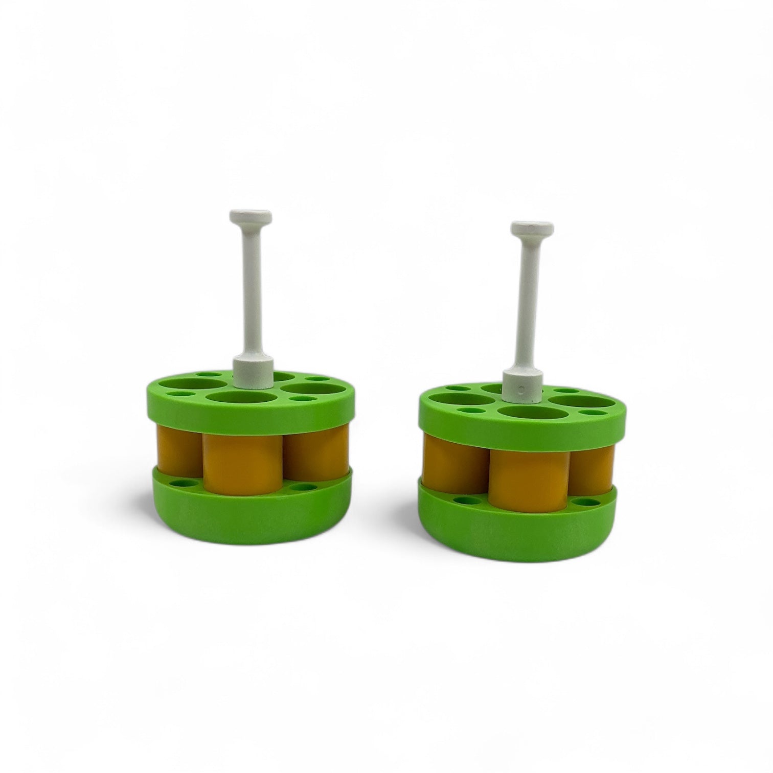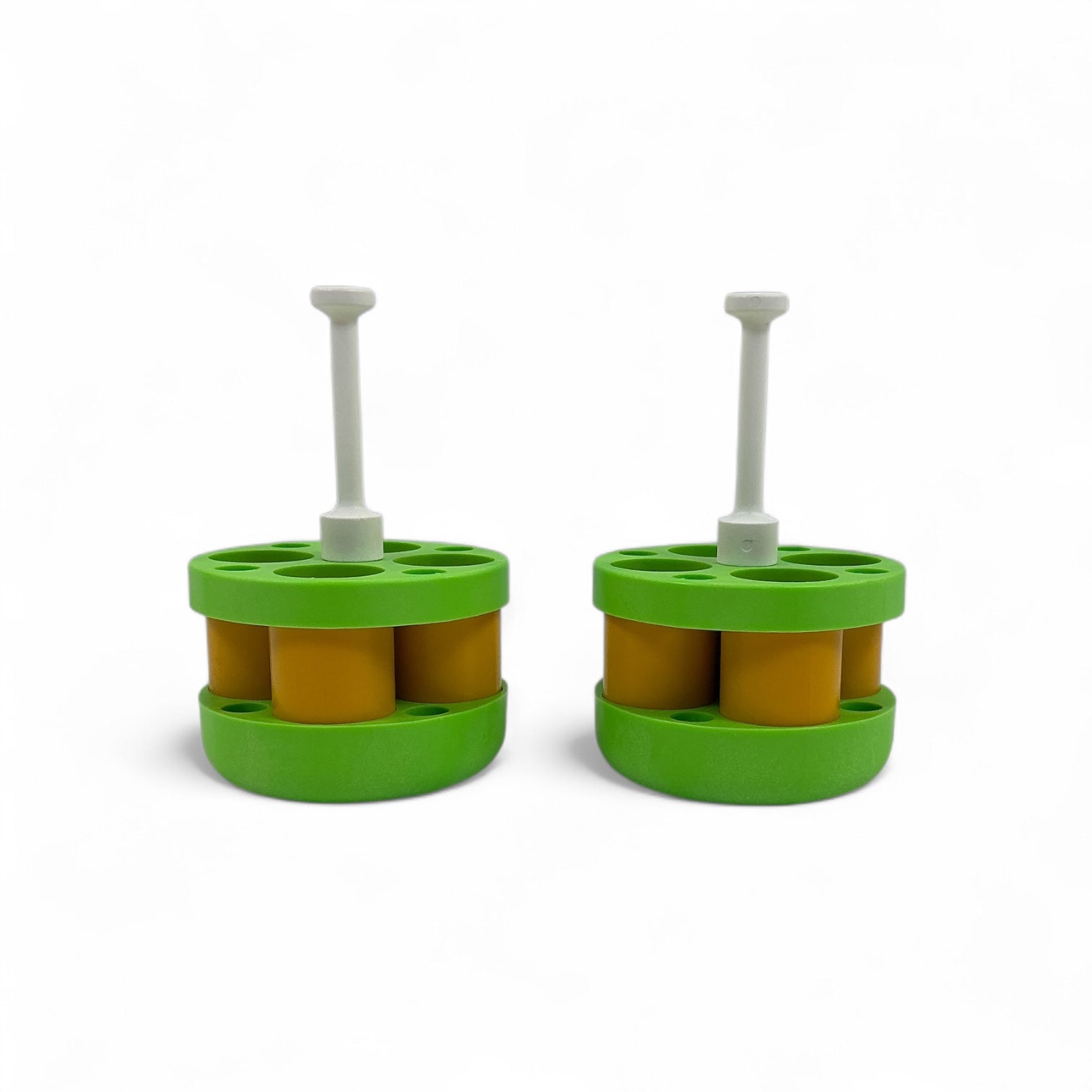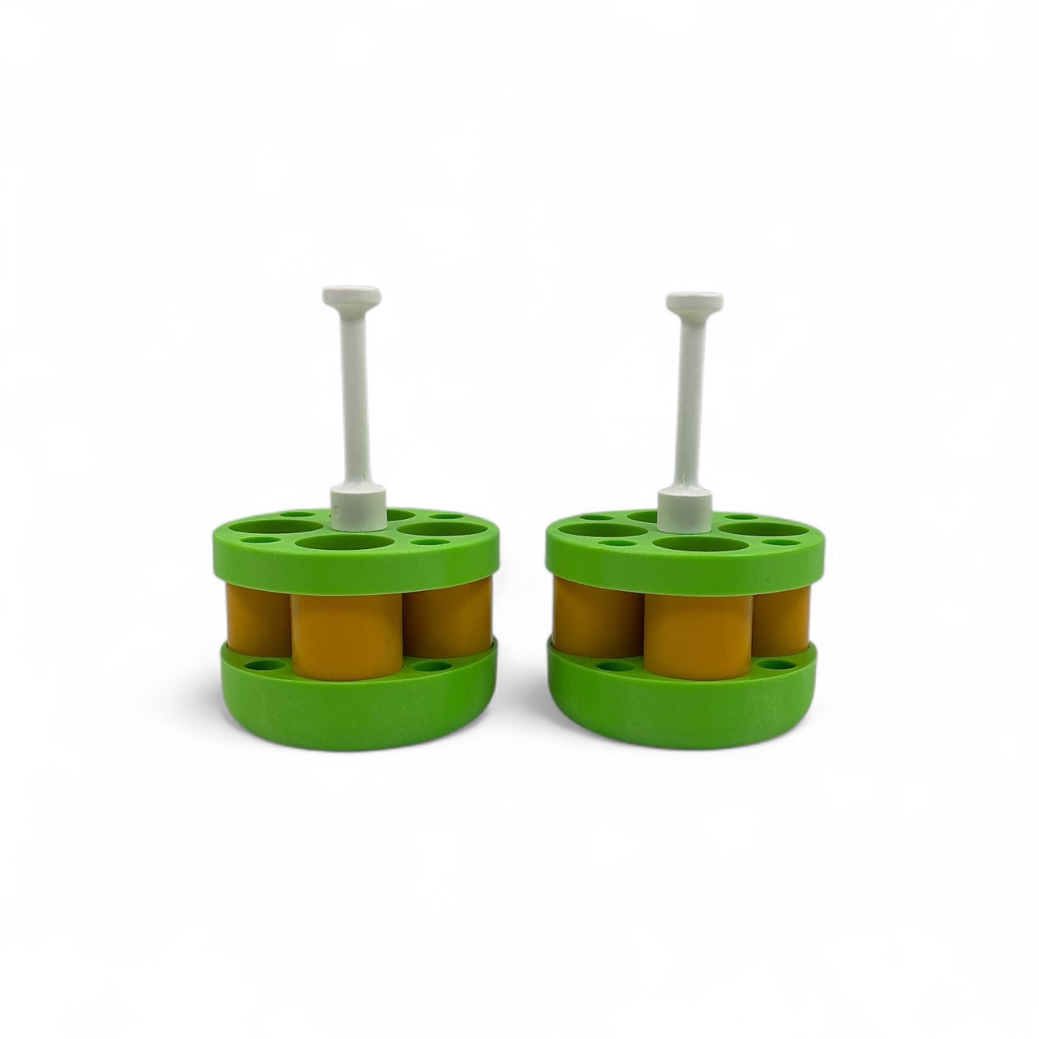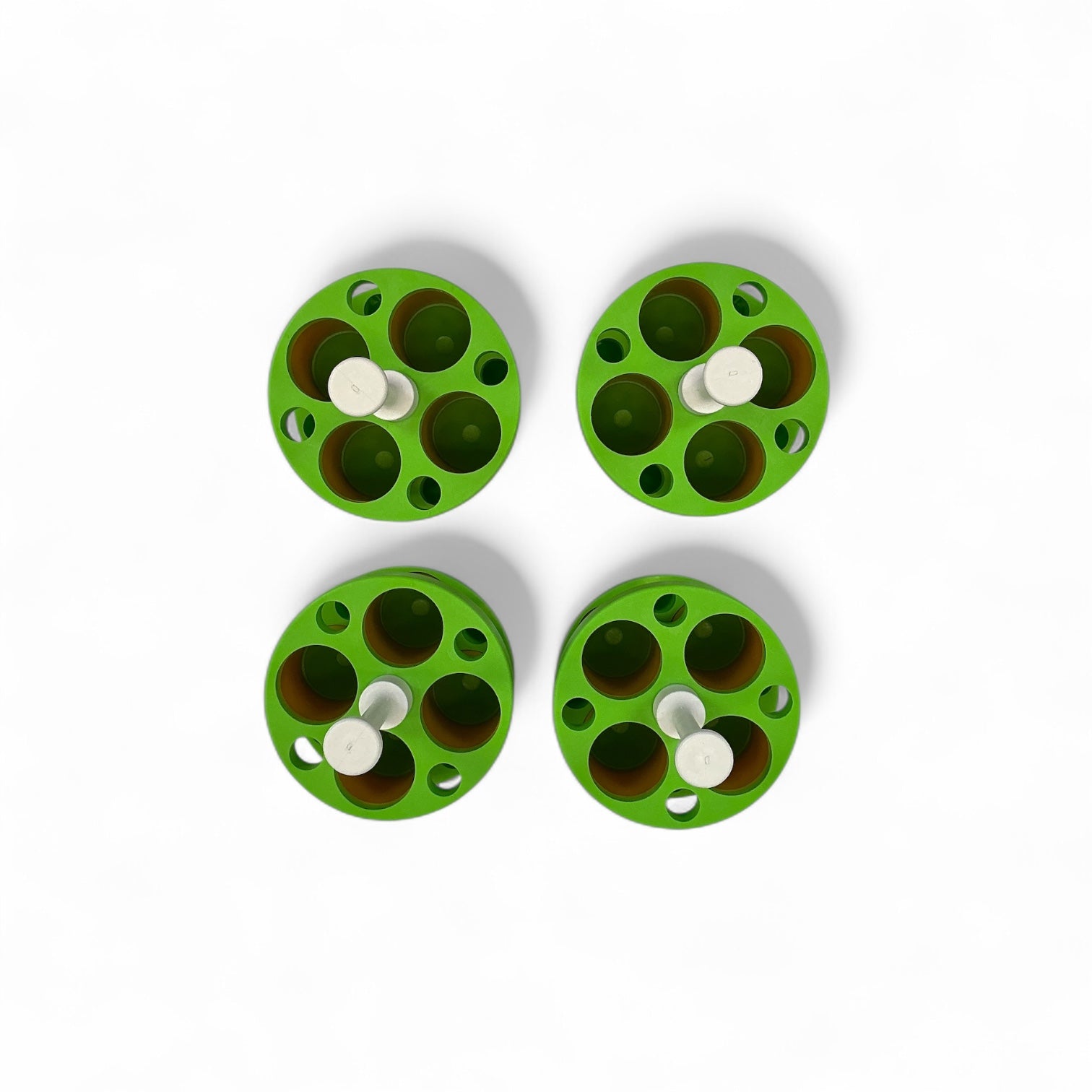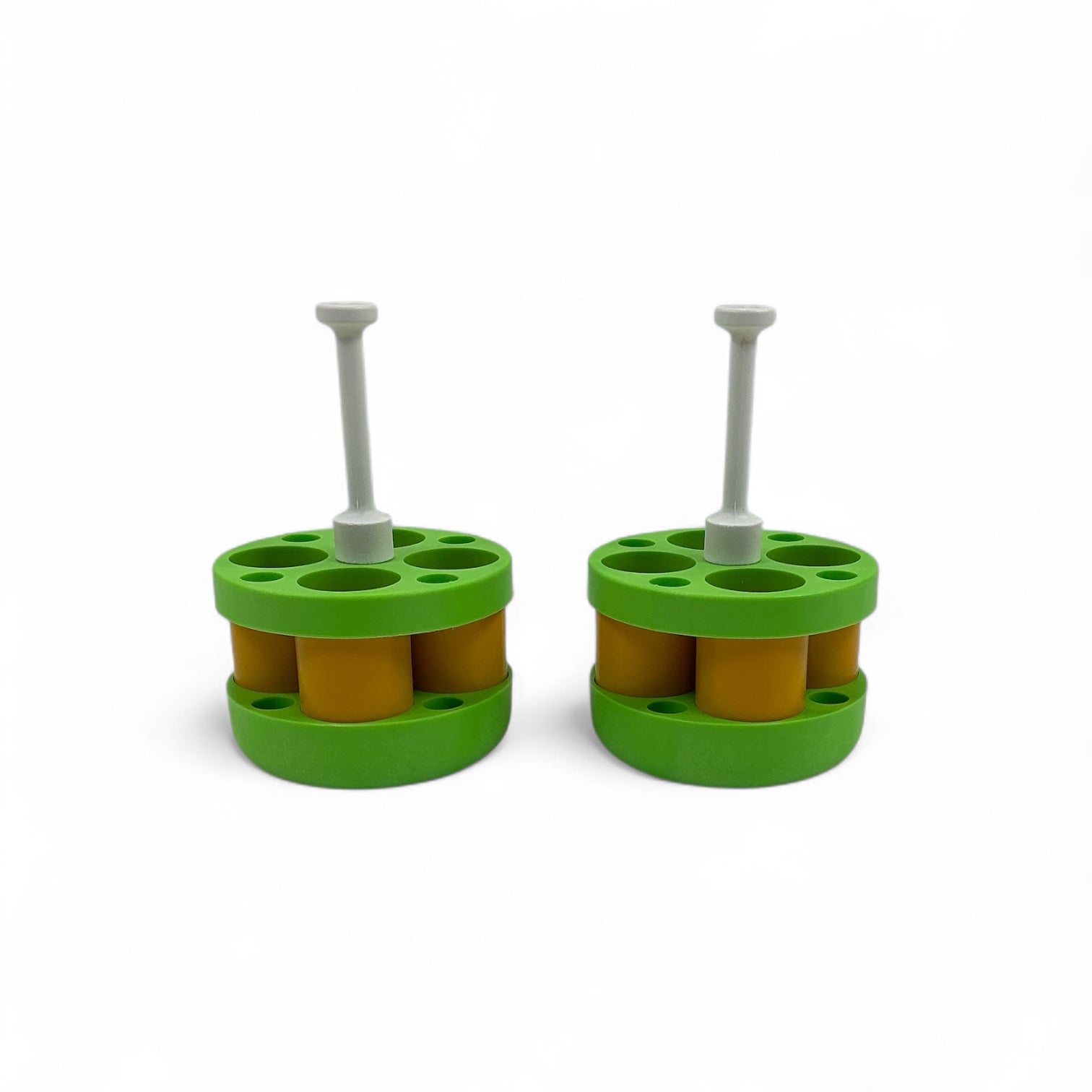 Keep your spins safe and stylish with this set of 4 Beckman Coulter Aerosolve tube racks, model 358992. Designed to securely hold four 30 x 120 mm conical tubes (50 mL each), these matched-weight racks are made for balanced runs in high-speed centrifuge applications. The lime green and yellow color combo adds a pop of lab flair while keeping your samples in check!
