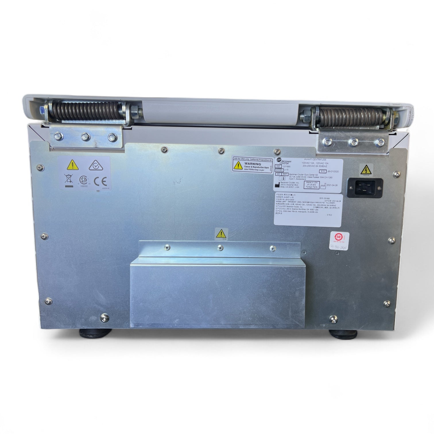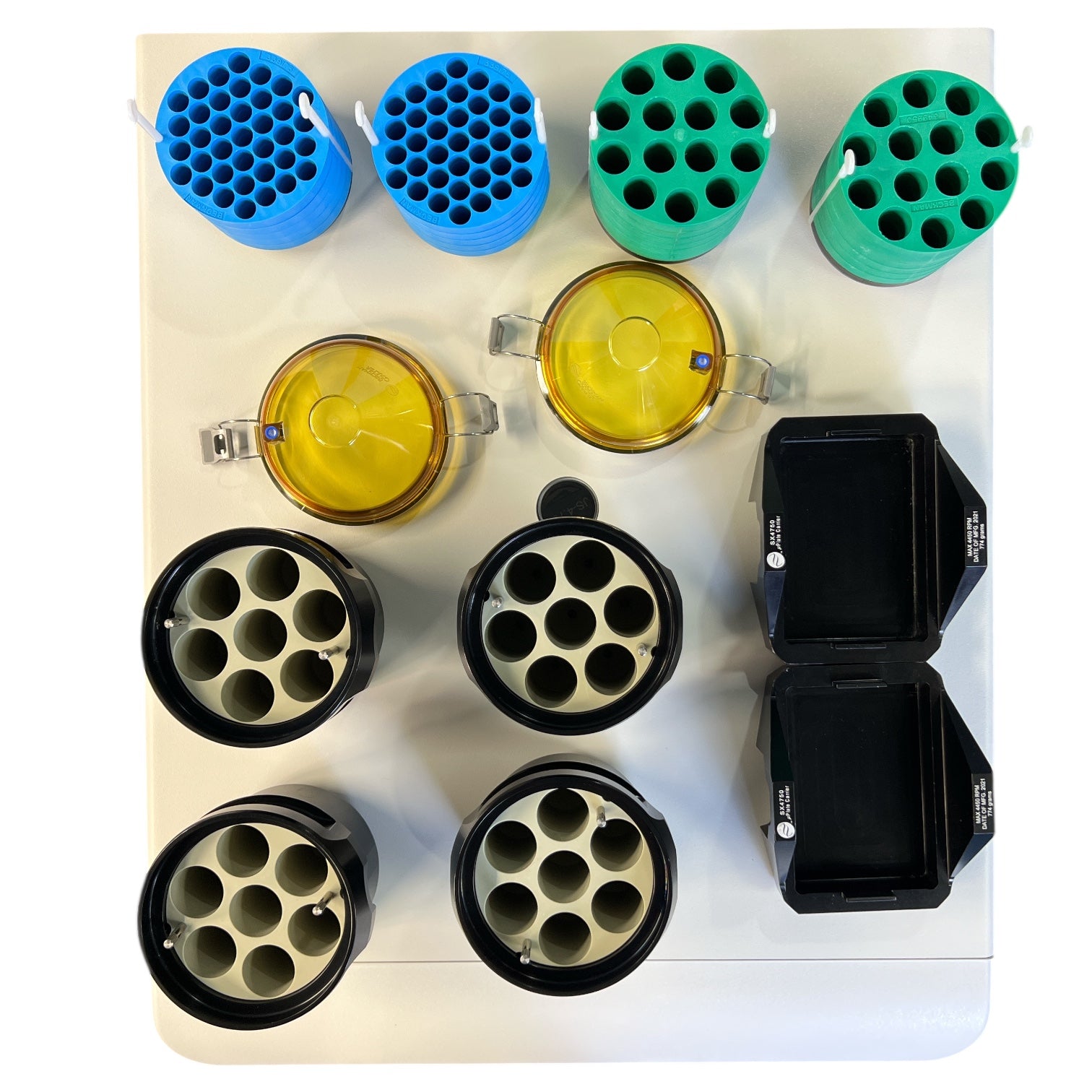 Included: J-15 centrifuge, JS-4.750 rotor, 4 buckets, 2 SX4750 plate carriers, 2x 339175, 2x 339950 adapters