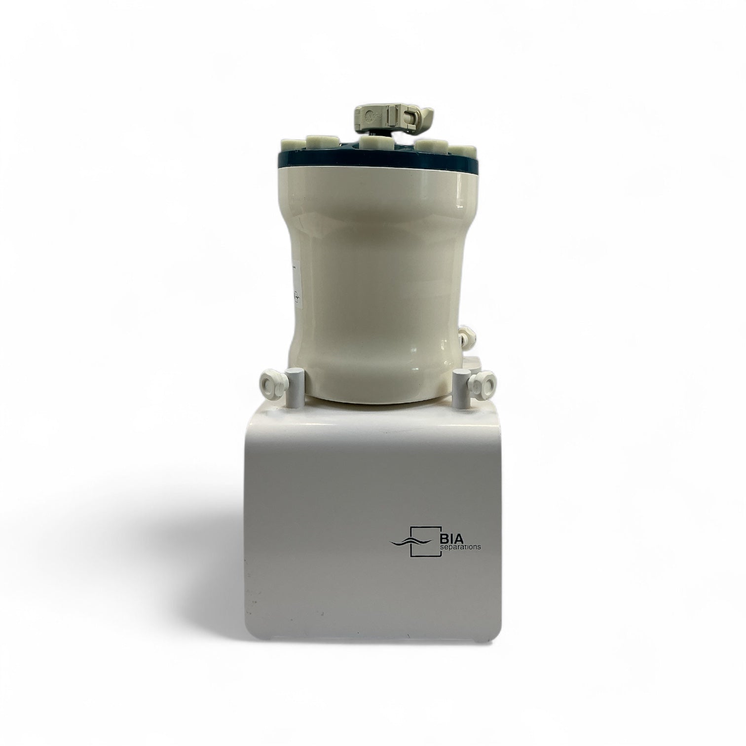 The BIA Separations CIMmultus QA-800 is a cGMP-grade strong anion exchange monolithic chromatography column designed for high-throughput purification of large biomolecules such as viruses, plasmids, and mRNA. This unit is used and offered as shown.