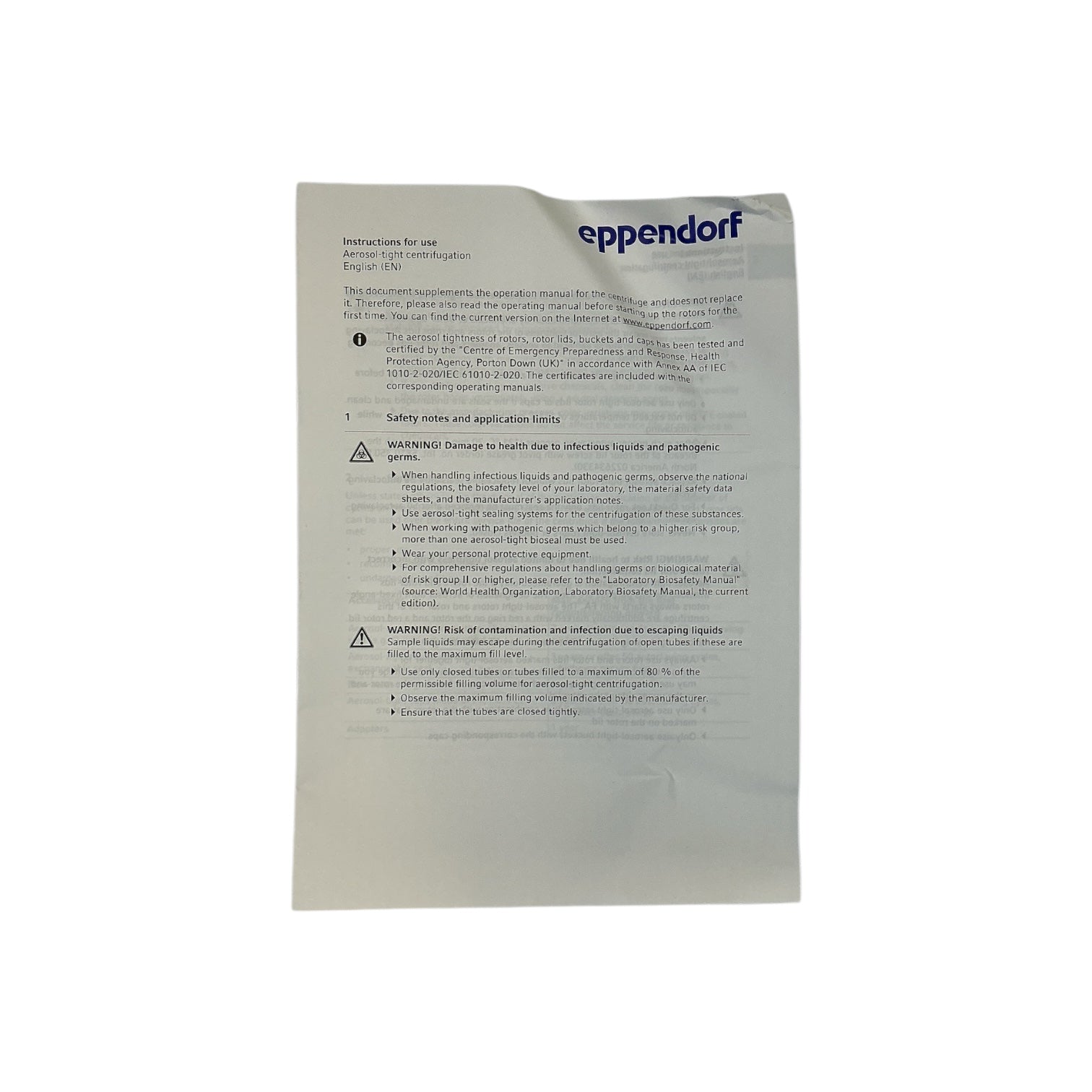 This is a new factory-sealed set of 2 Eppendorf aerosol-tight caps, designed for use with the S-4xUniversal rotor. These caps help ensure safe and secure centrifugation by preventing aerosol contamination during high-speed spins. Manufactured in Germany, Eppendorf components are trusted for reliable performance in laboratory environments.