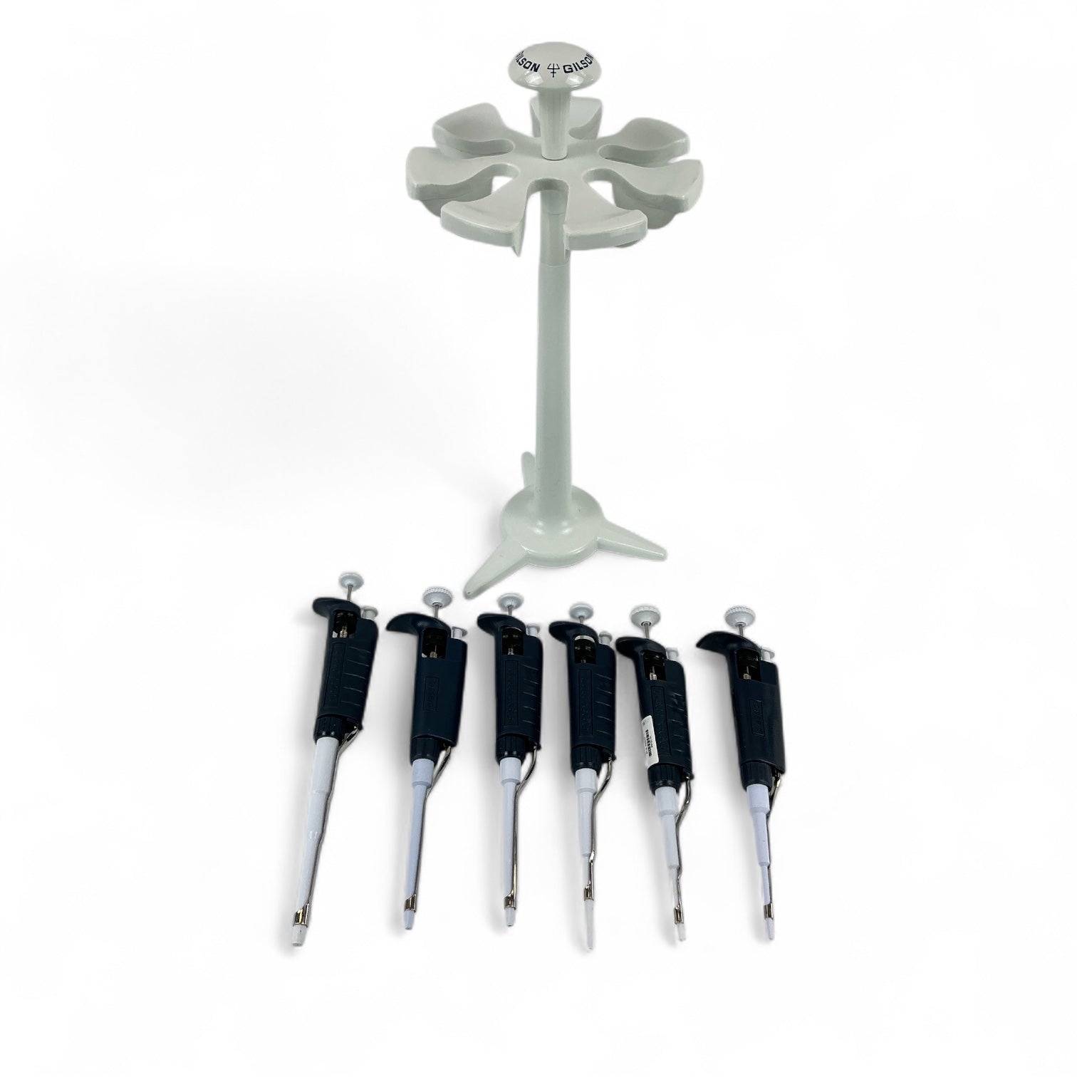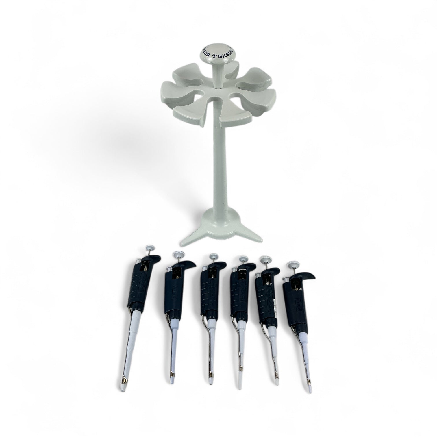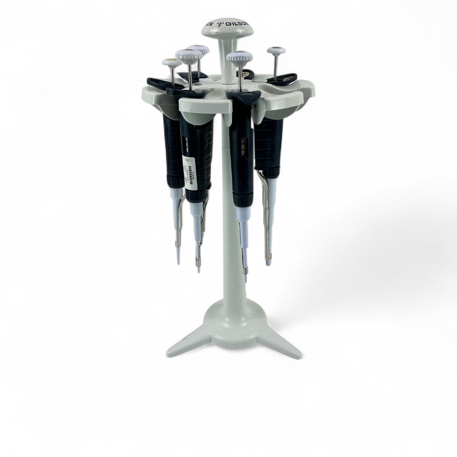Gilson Pipetman 6-Pipette Set w/ Carousel & Wall Mount – Tested – Cal Expired