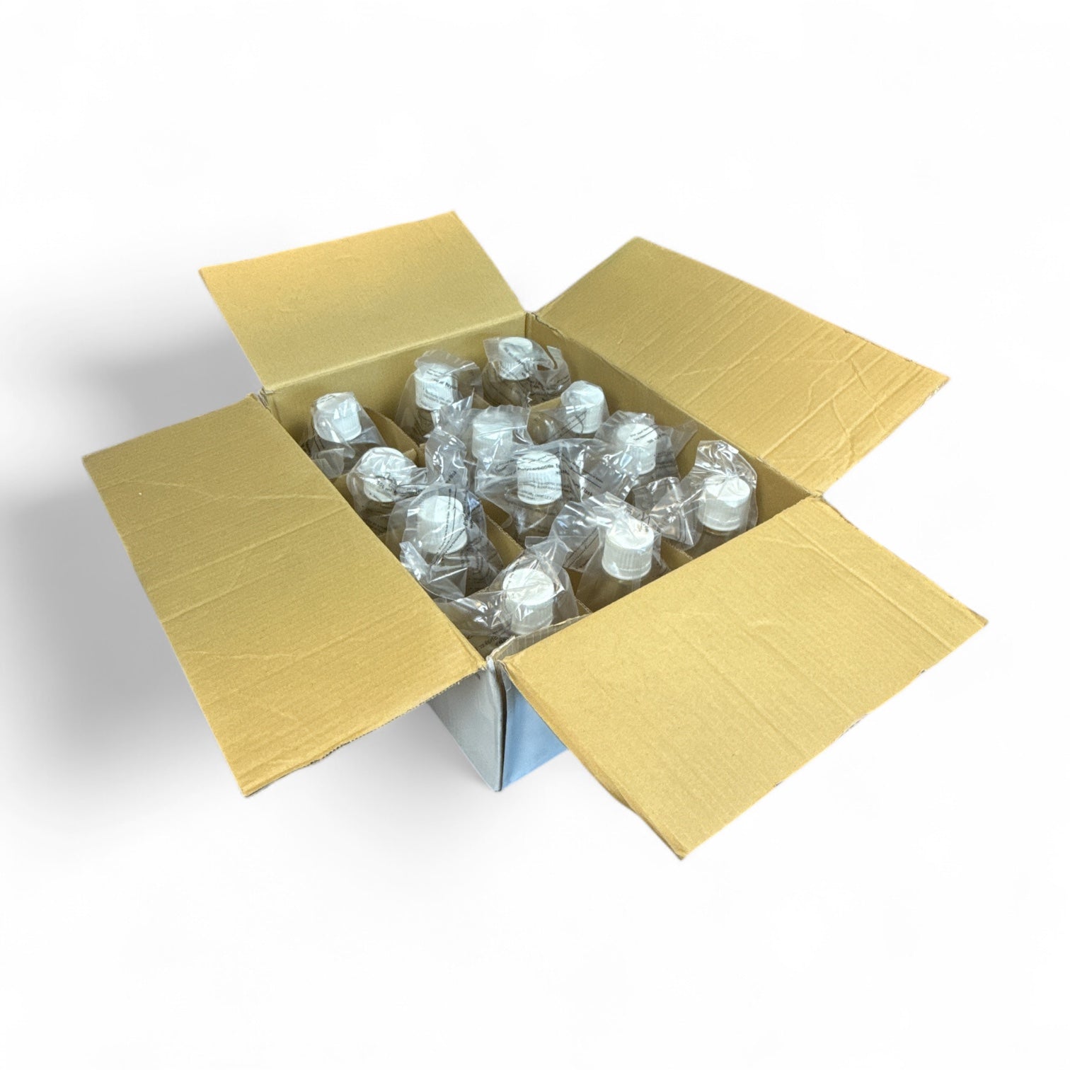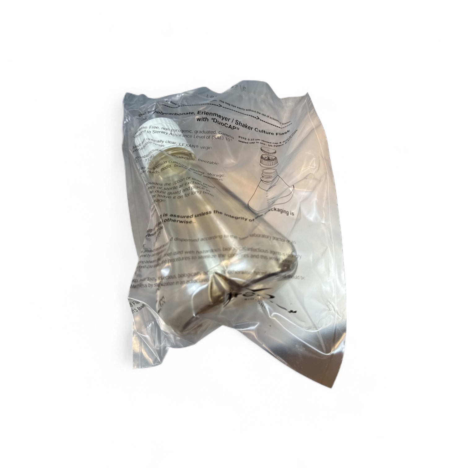 This is a new open box set of Greiner Bio-One sterile cell culture shaker flasks, each with a 500 mL capacity. These flasks feature a baffled bottom and come with clear polycarbonate bodies and white DuoCap® closures. Ideal for suspension culture applications, these are individually sealed and sterile.