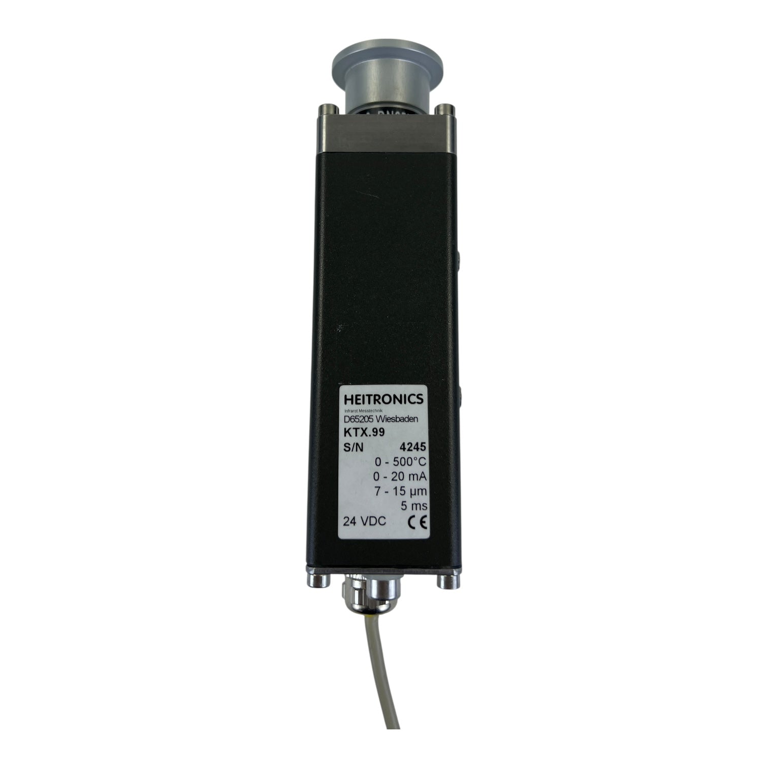 The Heitronics KTX.99 is a precision infrared radiation pyrometer designed for non-contact temperature measurement in industrial and laboratory environments. It provides accurate readings across a 0 to 500°C range with a 0–20 mA output signal, fast 5 ms response time, and spectral sensitivity of 7–15 µm.