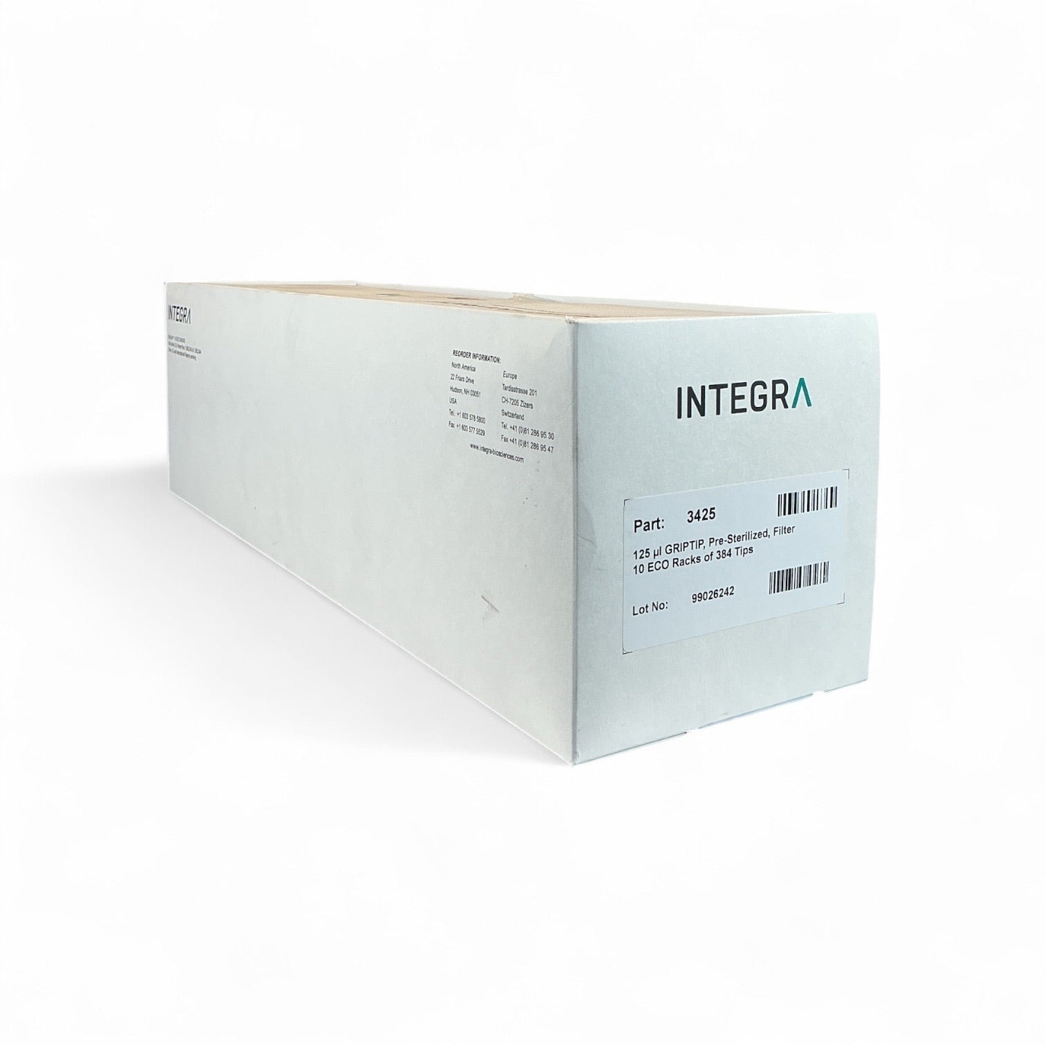 This listing is for one box of INTEGRA GRIPTIPS 3425. Each box contains 10 ECO racks, with 384 pre-sterilized, filtered 125 μl pipette tips per rack. Designed for compatibility with INTEGRA pipetting systems, these high-precision tips are ideal for contamination-sensitive applications.