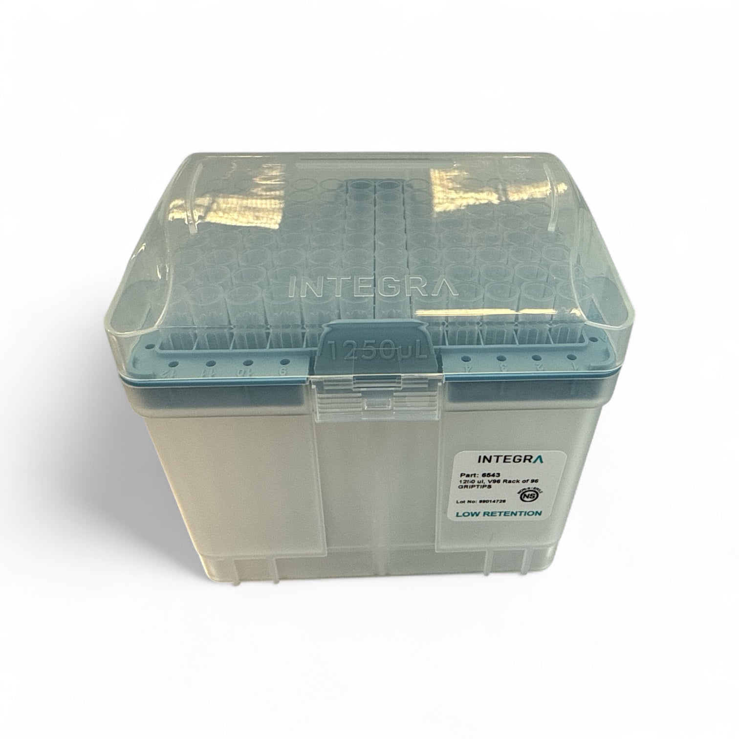 These non-sterile Integra 1250 µl GRIPTIPS with low retention are the perfect solution for accurate liquid handling in your lab. This lot contains 5 V96 racks of 96 tips, providing a total of 480 tips to keep your experiments flowing smoothly. These tips are designed for use with 1000 µl and 1250 µl pipettes.
