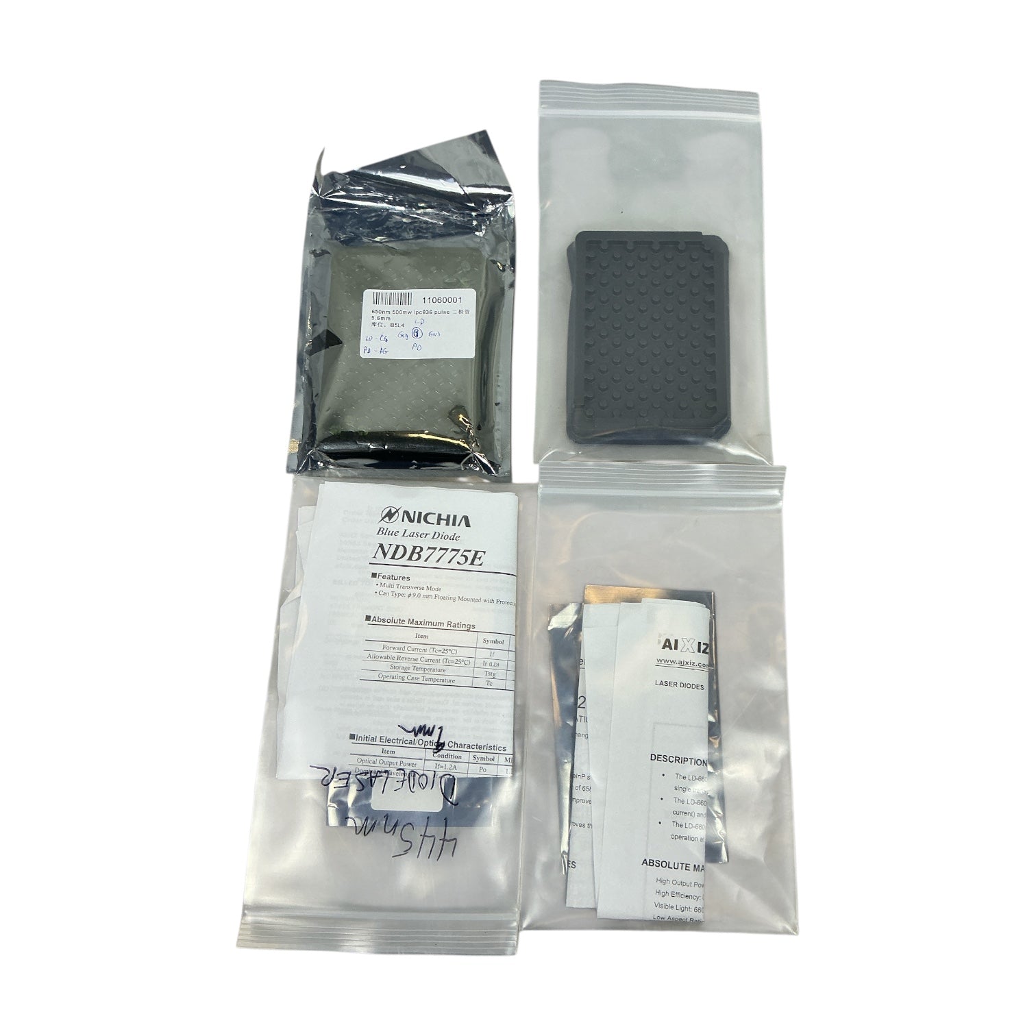 Laser Diode Lot – Nichia NDB7775E, 660nm 200mW, 650nm 500mW, Unknown – 24pcs