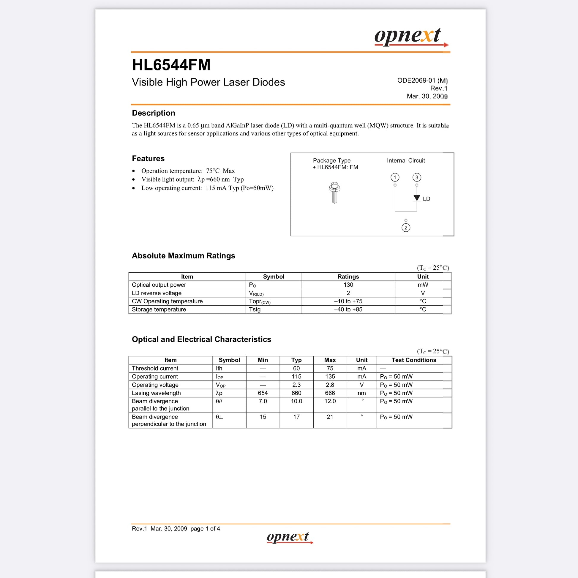 Output Power: 50 mW
