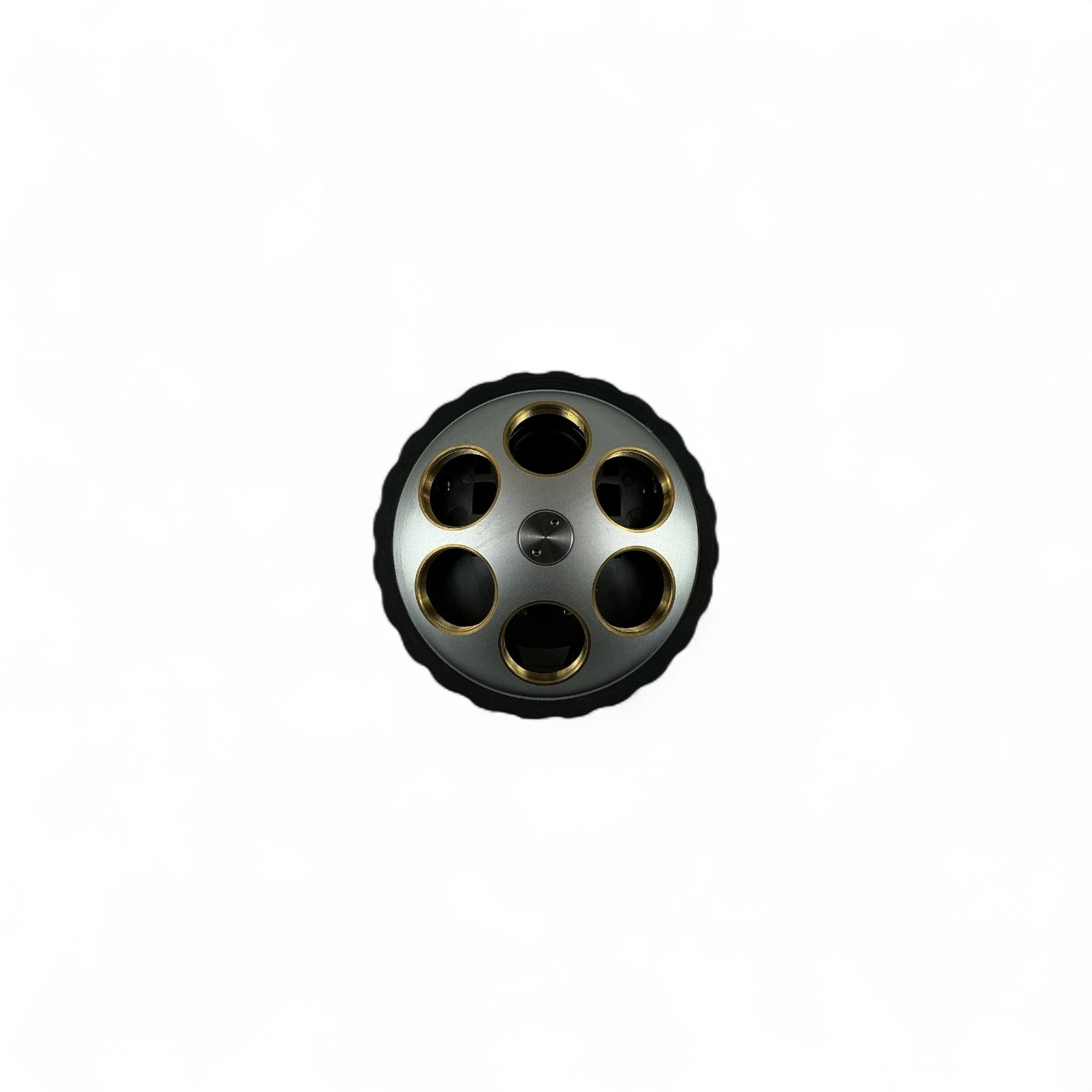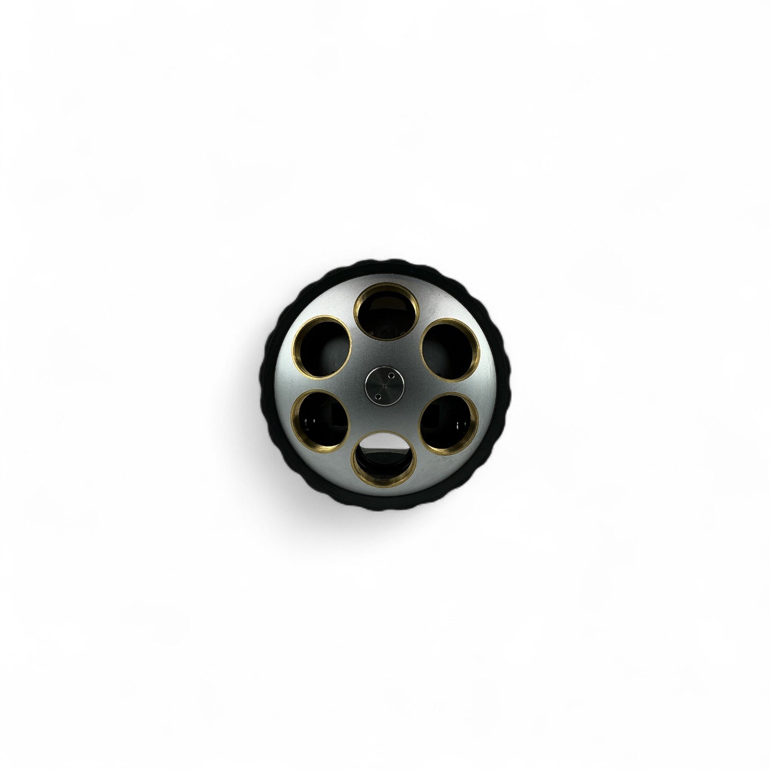 This 6-position objective turret is a genuine Nikon component removed from an Eclipse E800 microscope. It holds up to six RMS-threaded objective lenses and rotates smoothly for quick magnification changes. Precision-machined brass threads ensure durability and optical alignment. Ideal for replacing or upgrading the nosepiece on compatible Nikon Eclipse series microscopes.