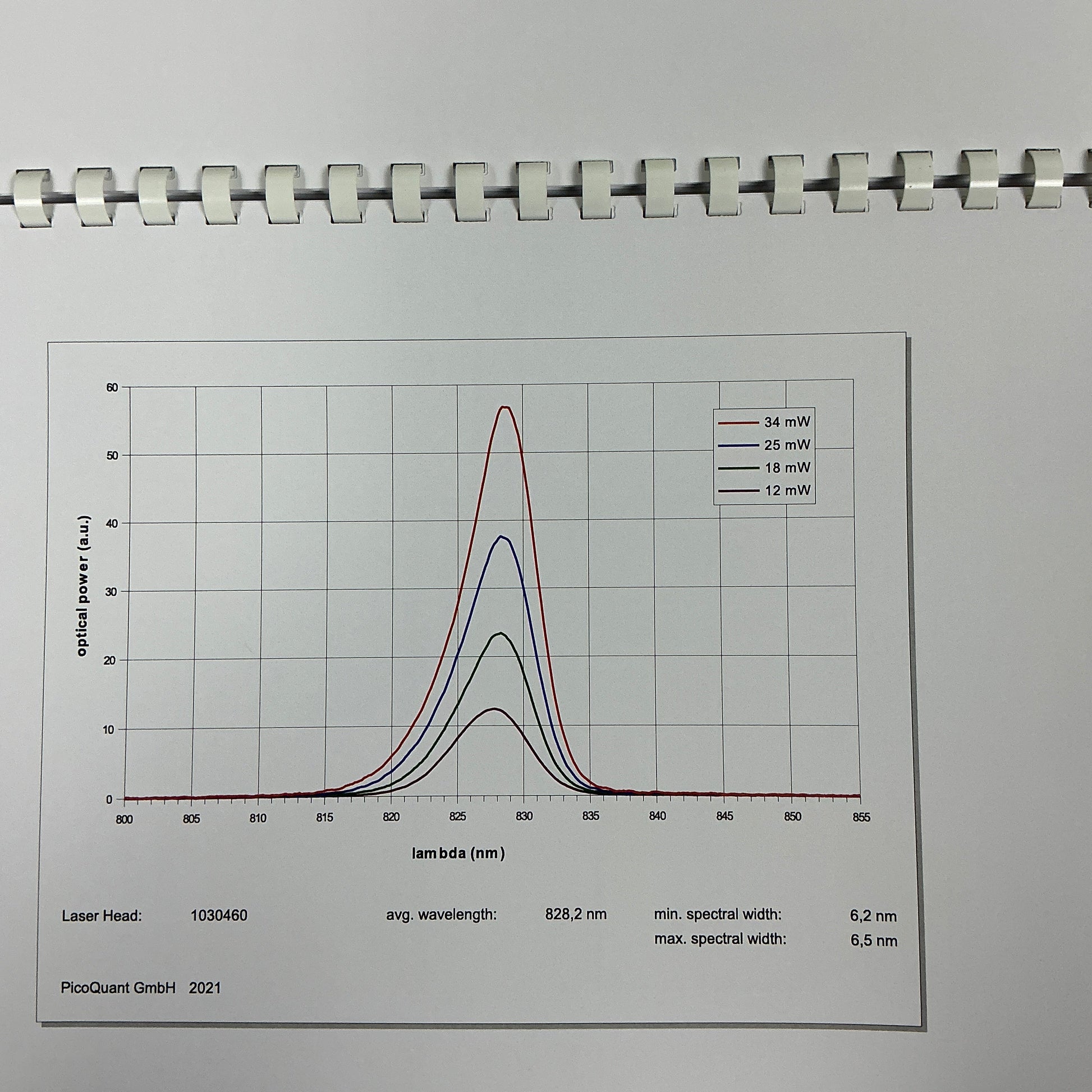 Wavelength: 830 nm (centered in the near-infrared range)