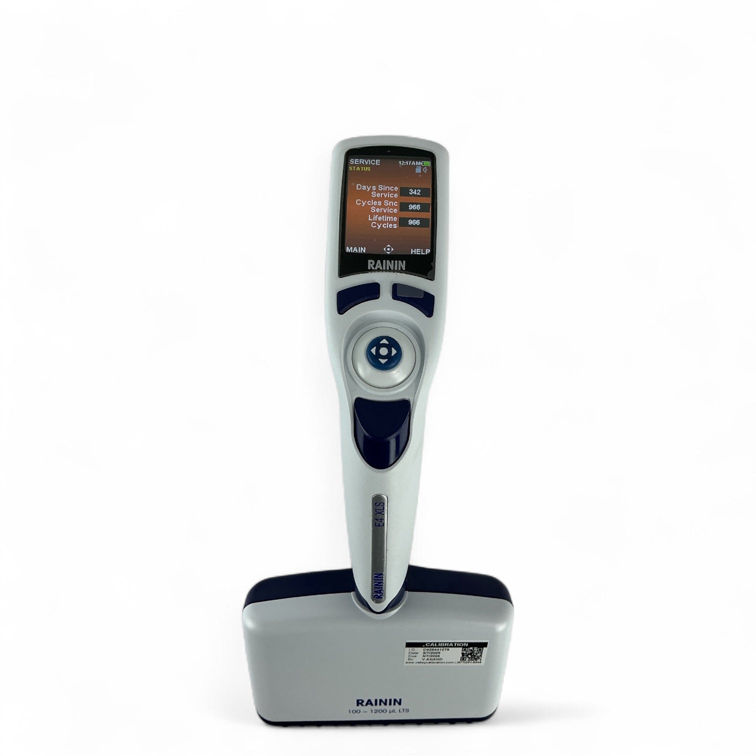The Rainin E4 XLS+ is a 12-channel electronic pipette designed for high-volume multichannel liquid handling with precision and ease. This LTS-compatible unit features a full-color interface, programmable modes, and smooth electronic operation. Lightly used with only 966 total cycles. Includes original charger. Calibration is valid through March 7, 2026. Manufactured August 26, 2024.