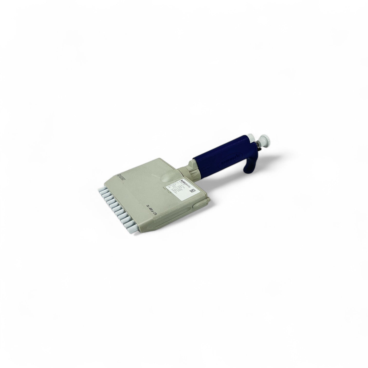 The Rainin Pipet-Lite L200 12-channel pipette is designed for efficient multi-sample processing in the 20–200 µL range. It features an ergonomic handle with LTS (LiteTouch System) for effortless tip mounting and ejection across all channels. This unit has been tested for basic function. Calibration expired in 2024 and should be renewed for regulated applications.