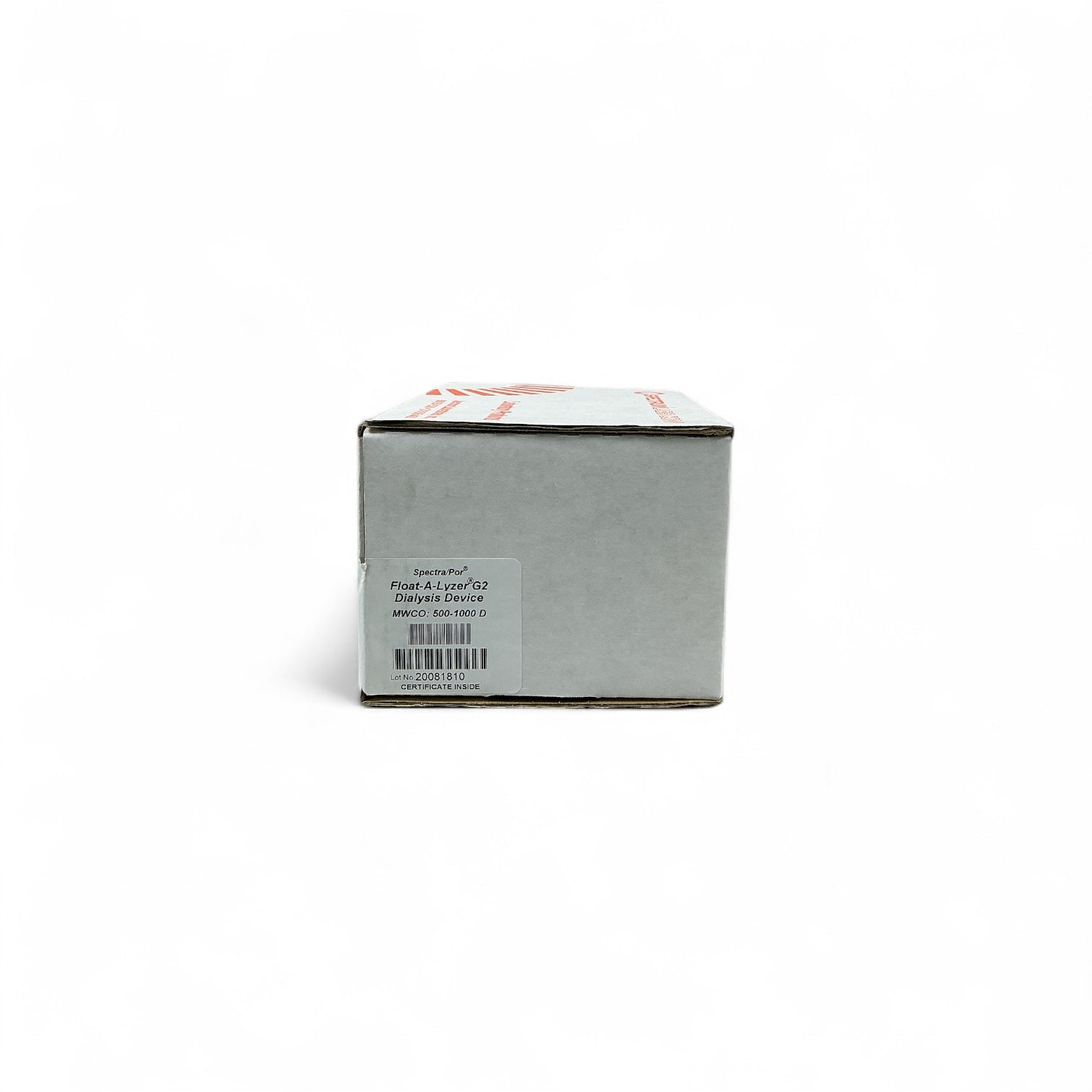 The Spectrum Labs Float-A-Lyzer G2 (G235027) is a single-use dialysis device designed for low-molecular-weight separations. This unit features a 1 mL volume capacity and a 500–1000 Dalton MWCO membrane, suitable for buffer exchange, desalting, and equilibrium dialysis. Manufactured on 01/03/2023.