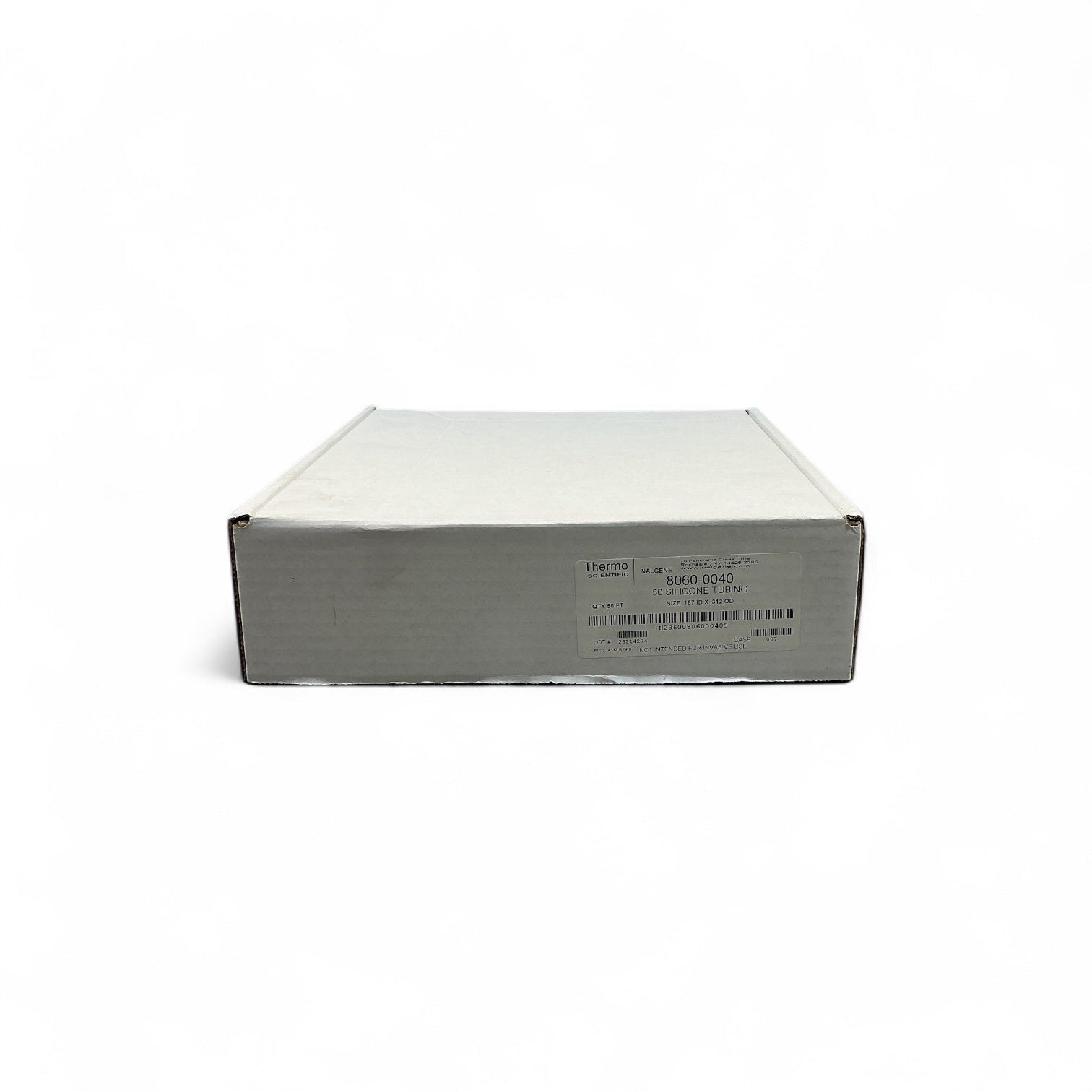This Thermo Scientific silicone tubing (model 8060-0040) is a 50-foot length of high-quality platinum-cured silicone tubing. It features a 0.187" inner diameter and 0.312" outer diameter, ideal for fluid transfer in laboratory and bioprocessing applications. The tubing is new and unused, providing excellent flexibility and resistance to high temperatures.