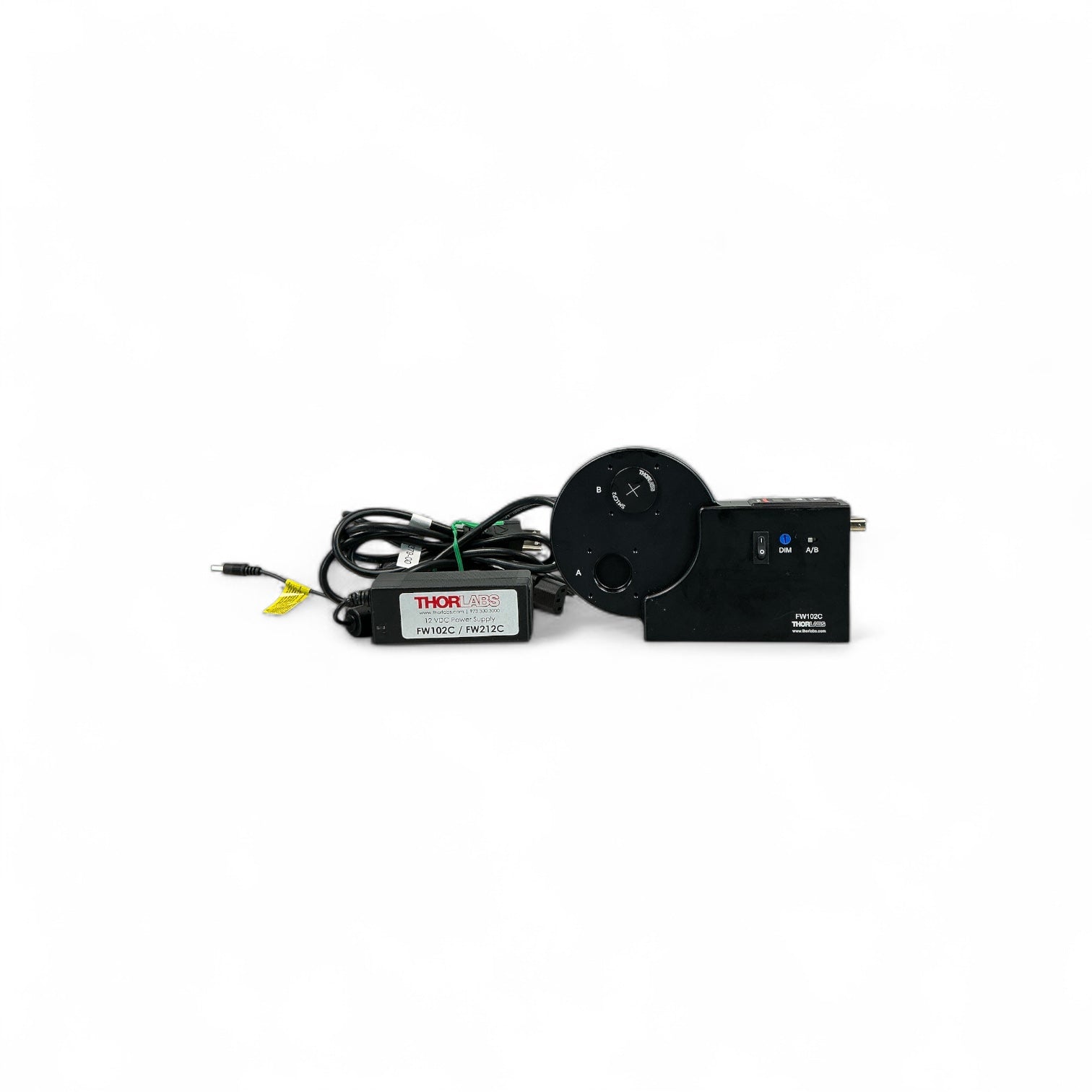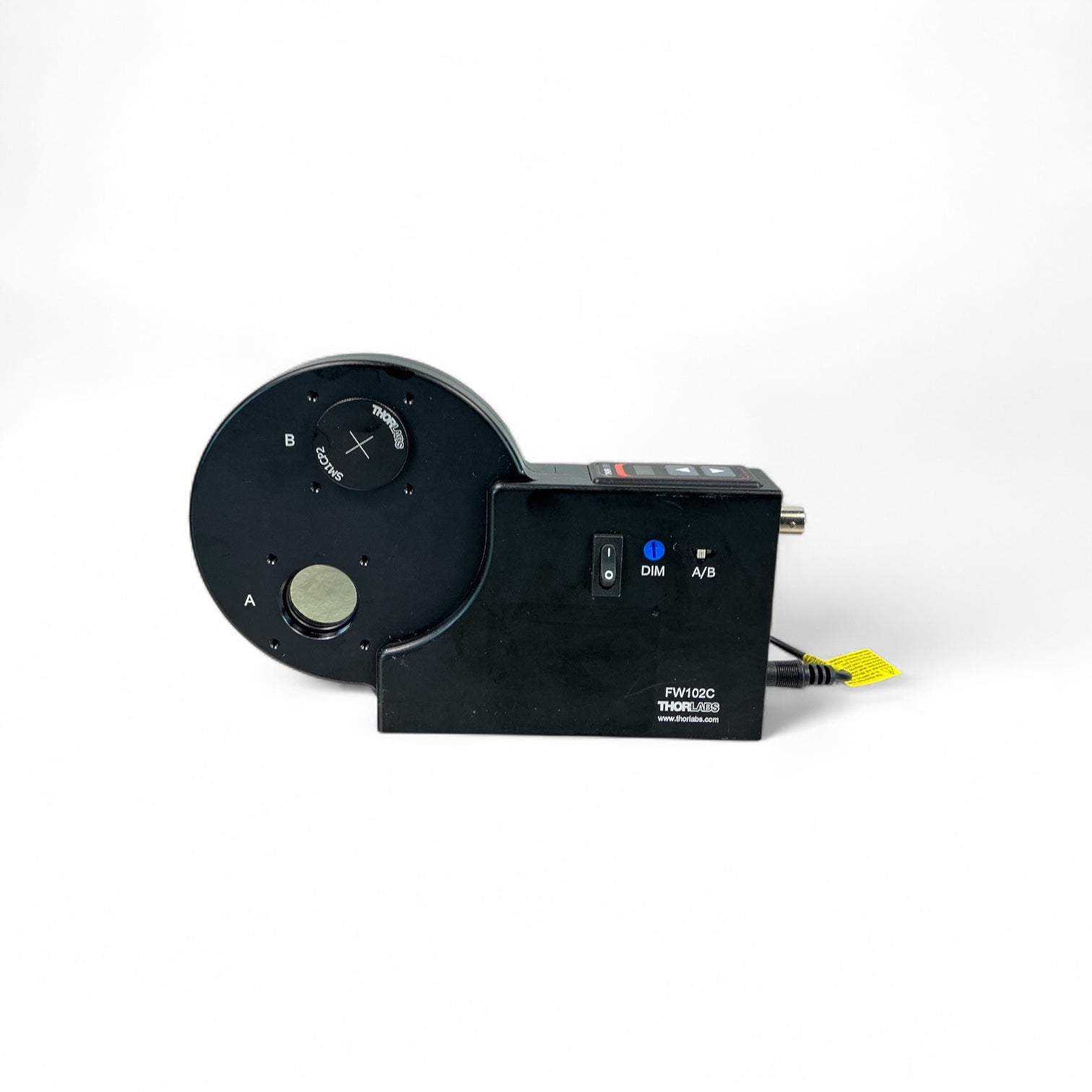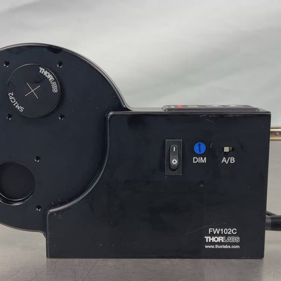 The Thorlabs FW102C is a motorized filter wheel designed for six 1" optical filters. It offers precise, programmable positioning with high repeatability and is ideal for automated optical setups in microscopy, spectroscopy, or photonics experiments. This unit includes an AC/DC adapter and has been tested for basic function.