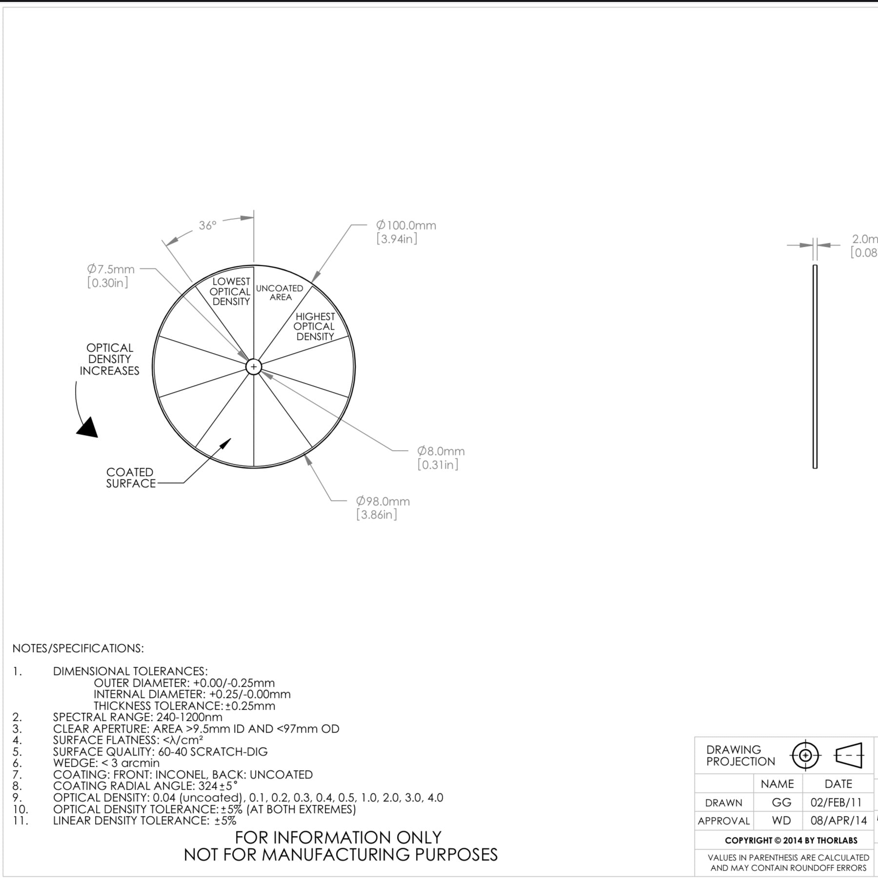 Thorlabs NDC-100S-4 Variable ND Filter Ø100mm OD 0.04–4.0 Unmounted NEW