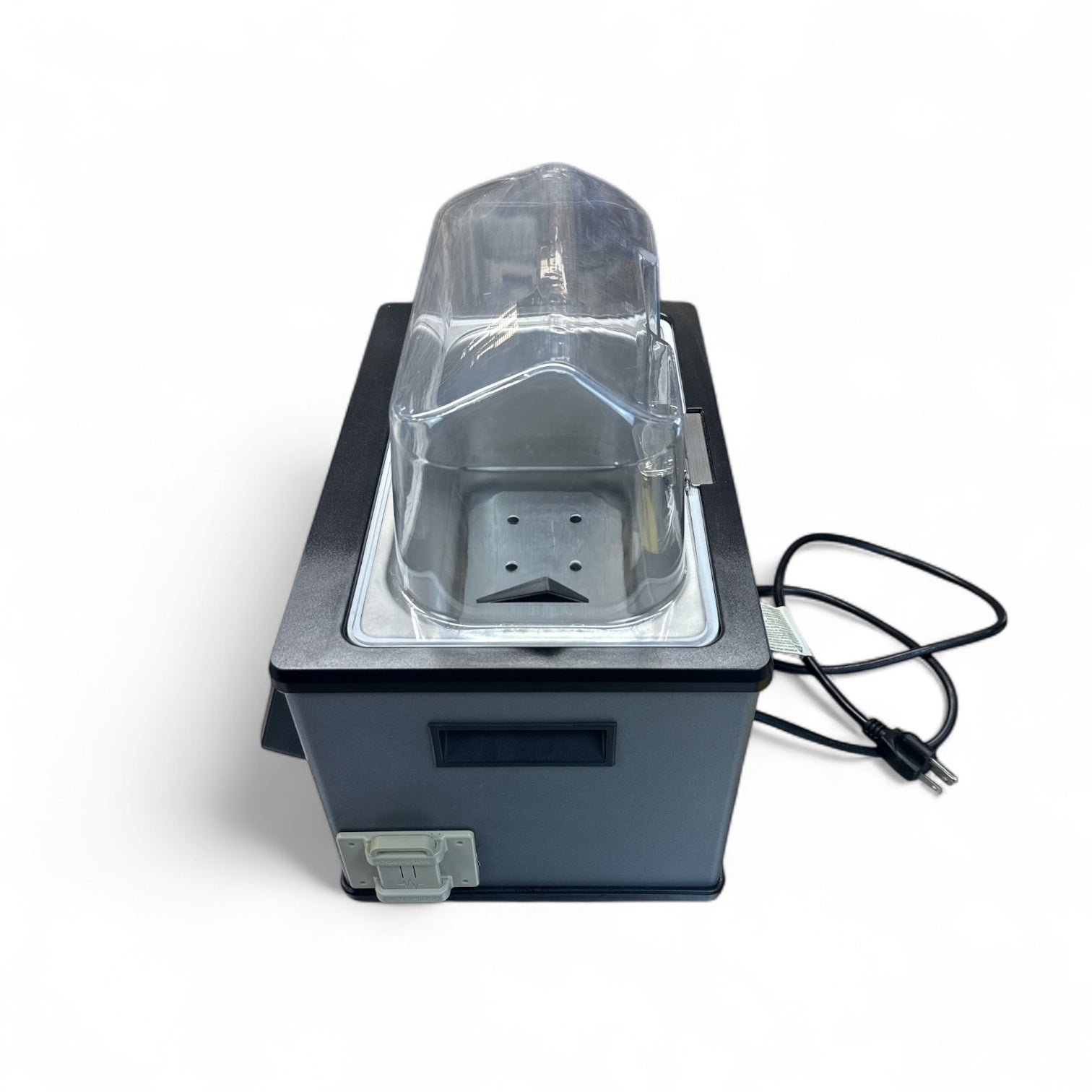 Excellent cosmetic condition with only minimal signs of use. The lid is clear and undamaged, control panel is responsive with a bright screen, and housing is clean with no cracks or dents. Includes power cord.