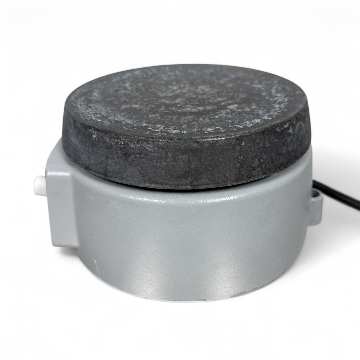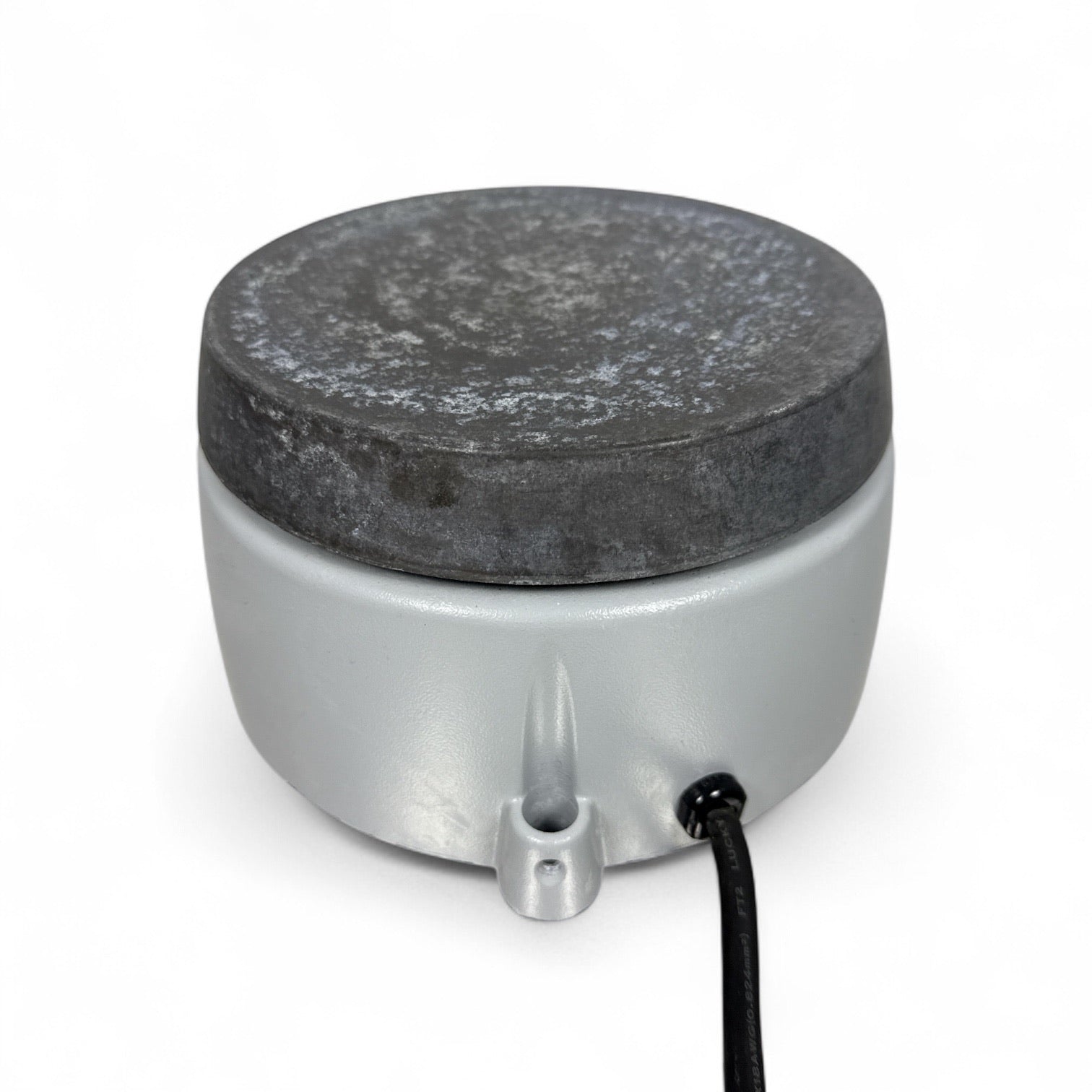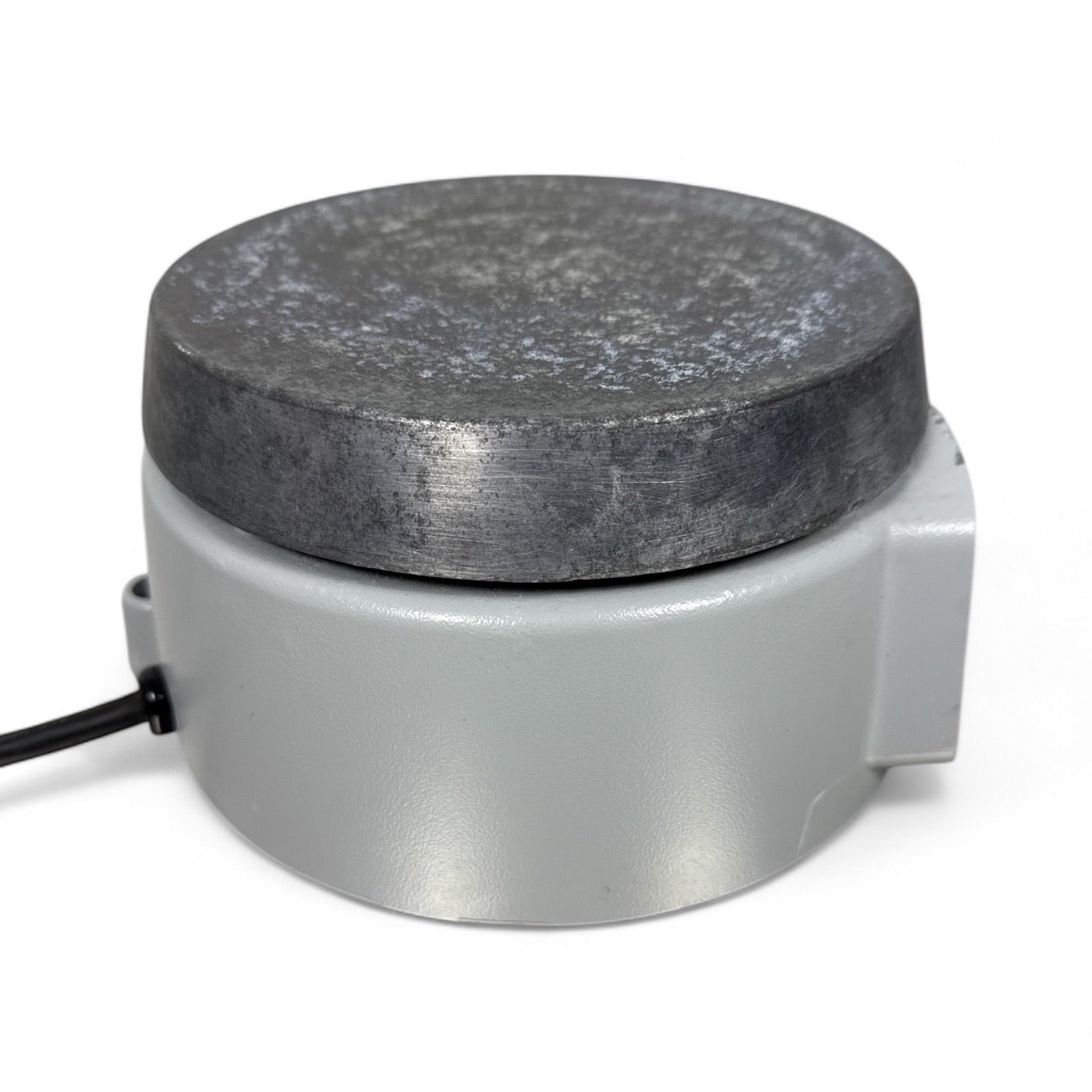 This unit has been tested and stirs successfully at dial settings above 6, but the magnetic rotation stalls or weakens below 6. The speed dial responds, and the power indicator illuminates. Cosmetically, the unit is in C grade condition with visible wear on the top plate and around the housing, consistent with regular lab use.